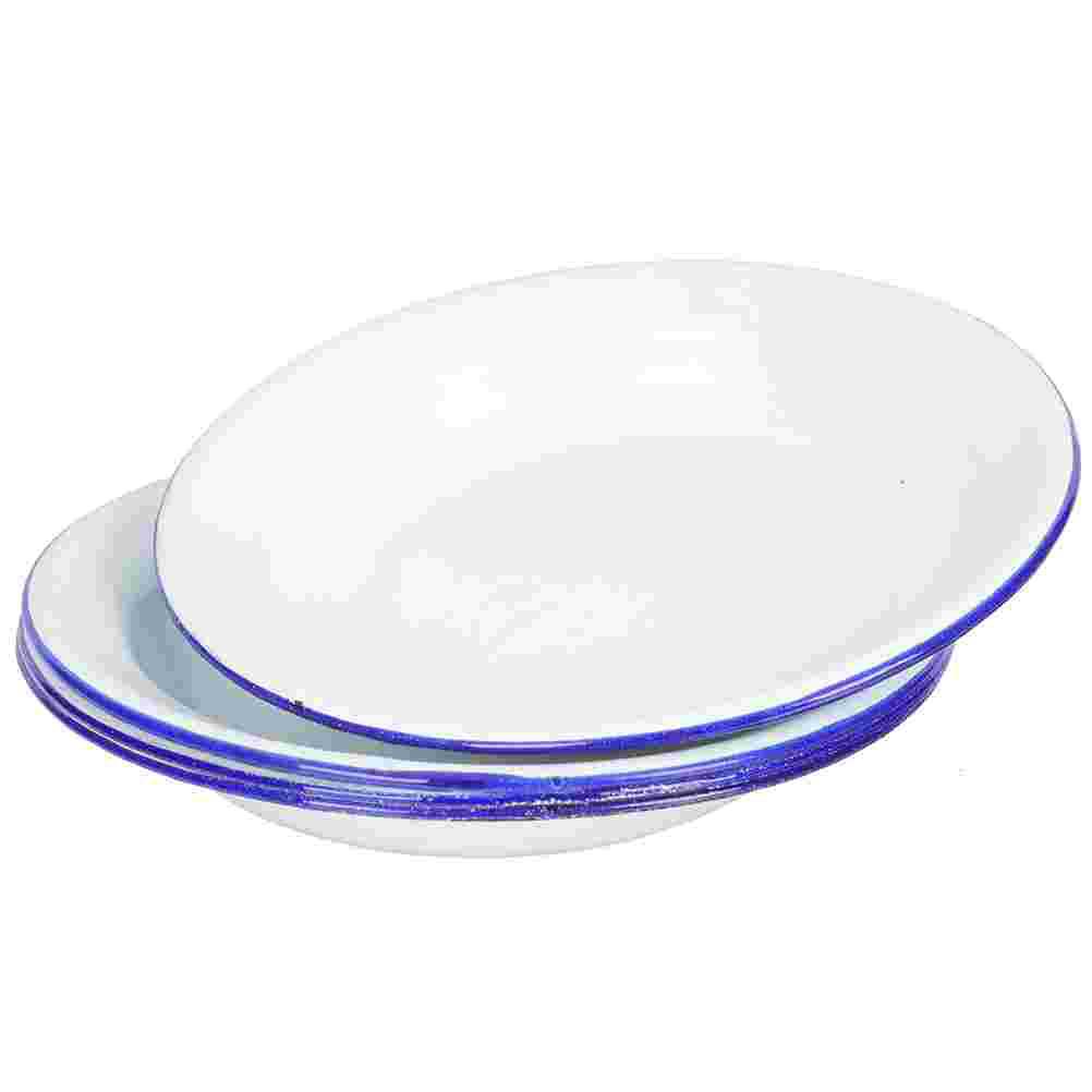 4 шт. Эмалированные подносы для тарелок в стиле ретро, тарелки для хранения фруктов, блюда для готовки на пару, плоские края, белые, винтажные белый