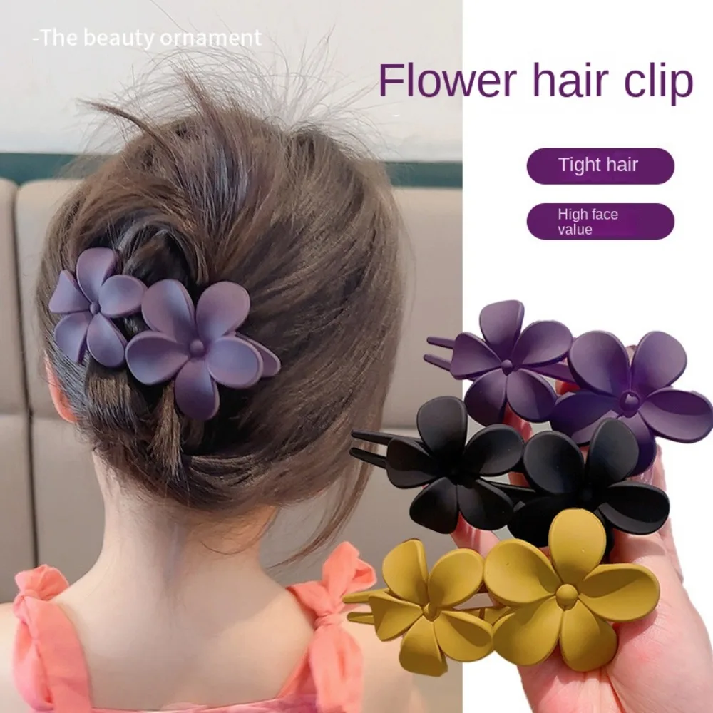 4 шт. акриловые двойные Цветочные заколки для волос, инструменты для укладки, однотонные заколки для волос, аксессуары для волос, шпильки для хвоста