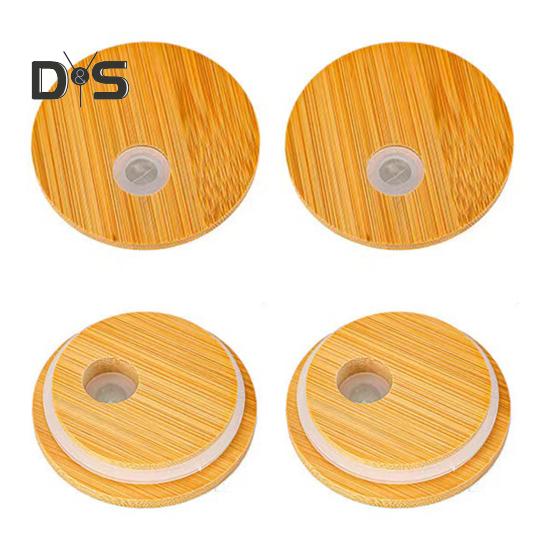 4 шт. бамбуковая крышка с отверстием для соломинки, герметичная силиконовая уплотнительная крышка, 2,76-дюймовая крышка для консервирования, сменная бамбуковая крышка для обычных банок для рта для пивных бокалов