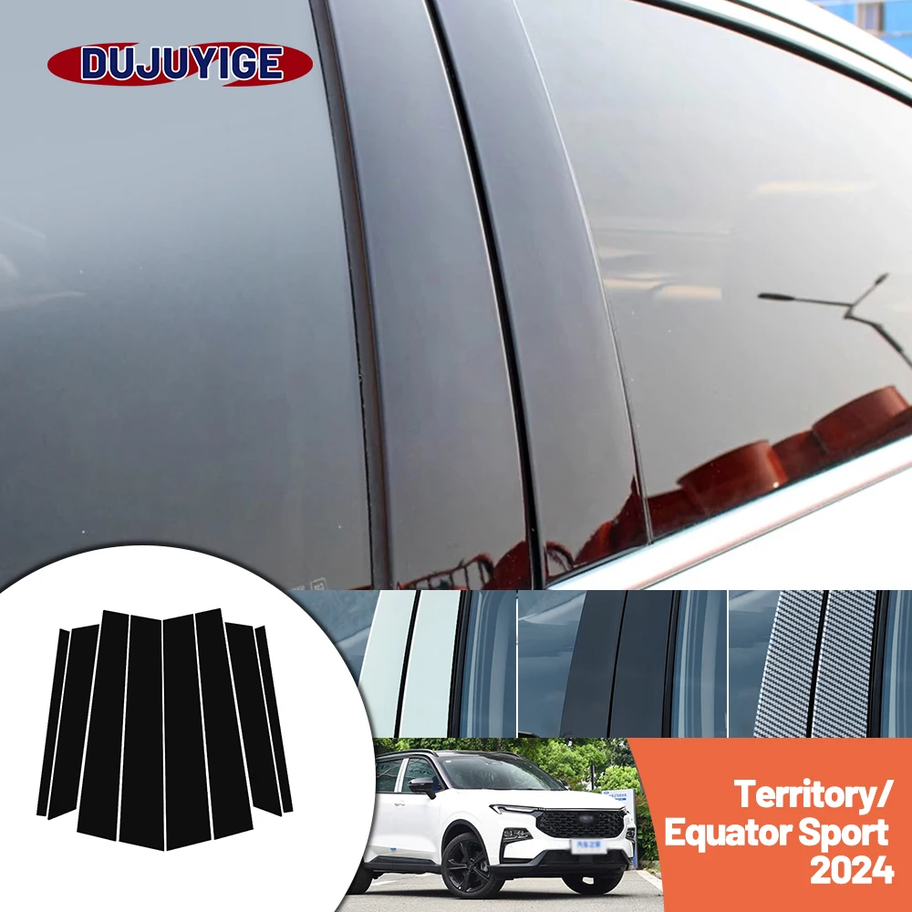Bright black carbon fiber door and window B C Pillar sticker suitable For Ford Territory Equator Sport 2024