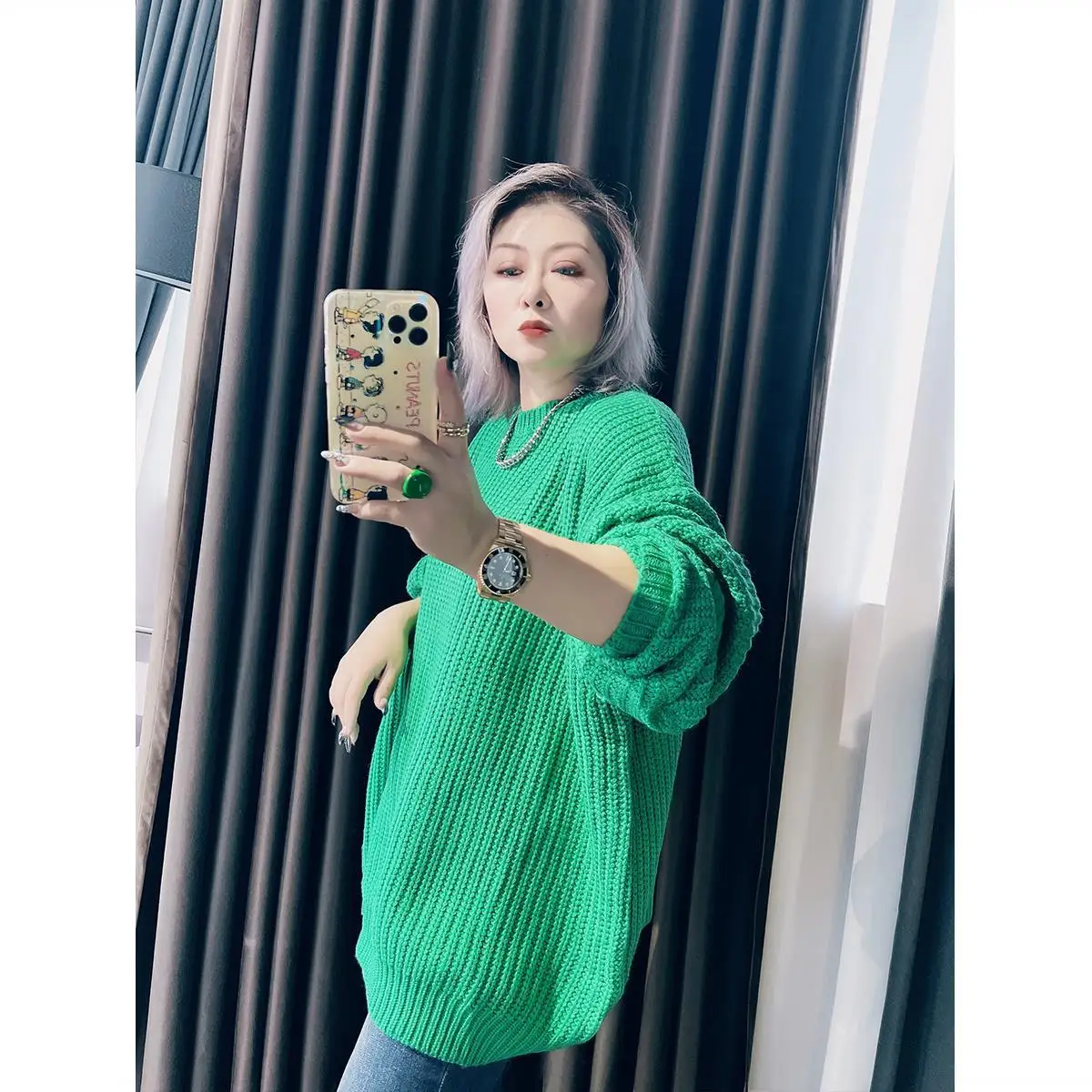 2022 autumn and winter new year plus size long-sleeved round neck ladies knitted sweater retro blouse loose lazy wind blouse