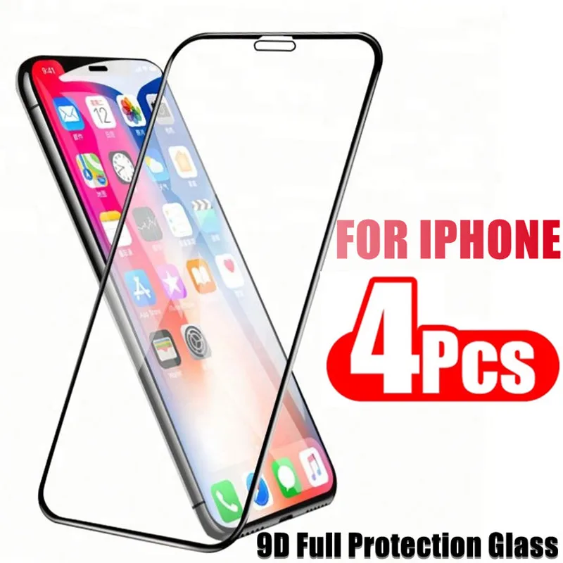 4 шт. закаленное защитное стекло для IPhone 14 11 12 13 Pro Max Mini XS MSX черная пленка для экрана для IPhone XR X 7 8 6S Plus SE стекло