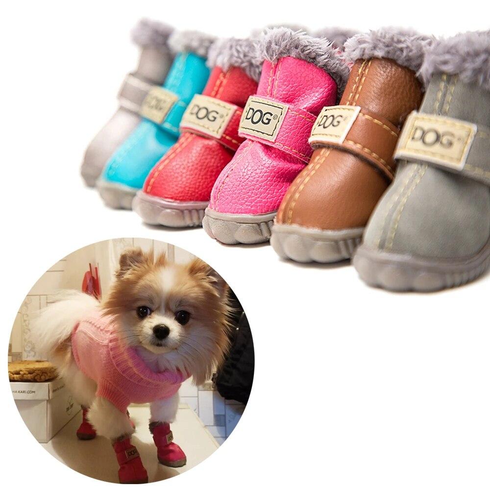 4 шт./компл. водонепроницаемая меховая обувь для собак, зимняя теплая обувь для домашних животных, нескользящие кожаные зимние пинетки для собак и кошек, ботинки для щенков чихуахуа