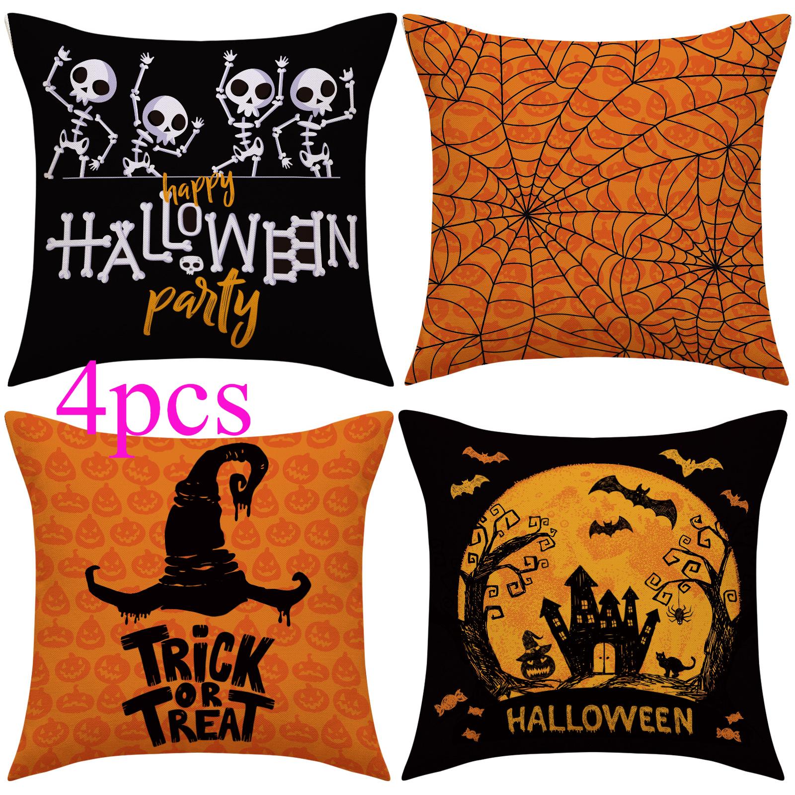 4 шт./компл. льняная наволочка на Хэллоуин, наволочка с принтом «Призрак», наволочка для подушки, праздничный подарок без сердцевины подушки 45cm*45cm