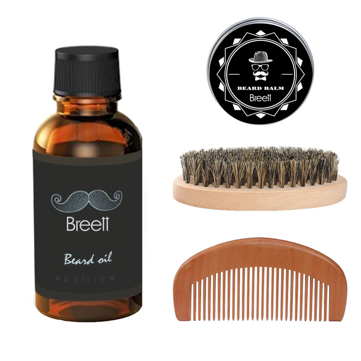 4 шт./компл. набор для ухода за бородой для мужчин, масло для бороды, бальзам с эфирным маслом для бороды с фотощеточкой, набор для роста бород...