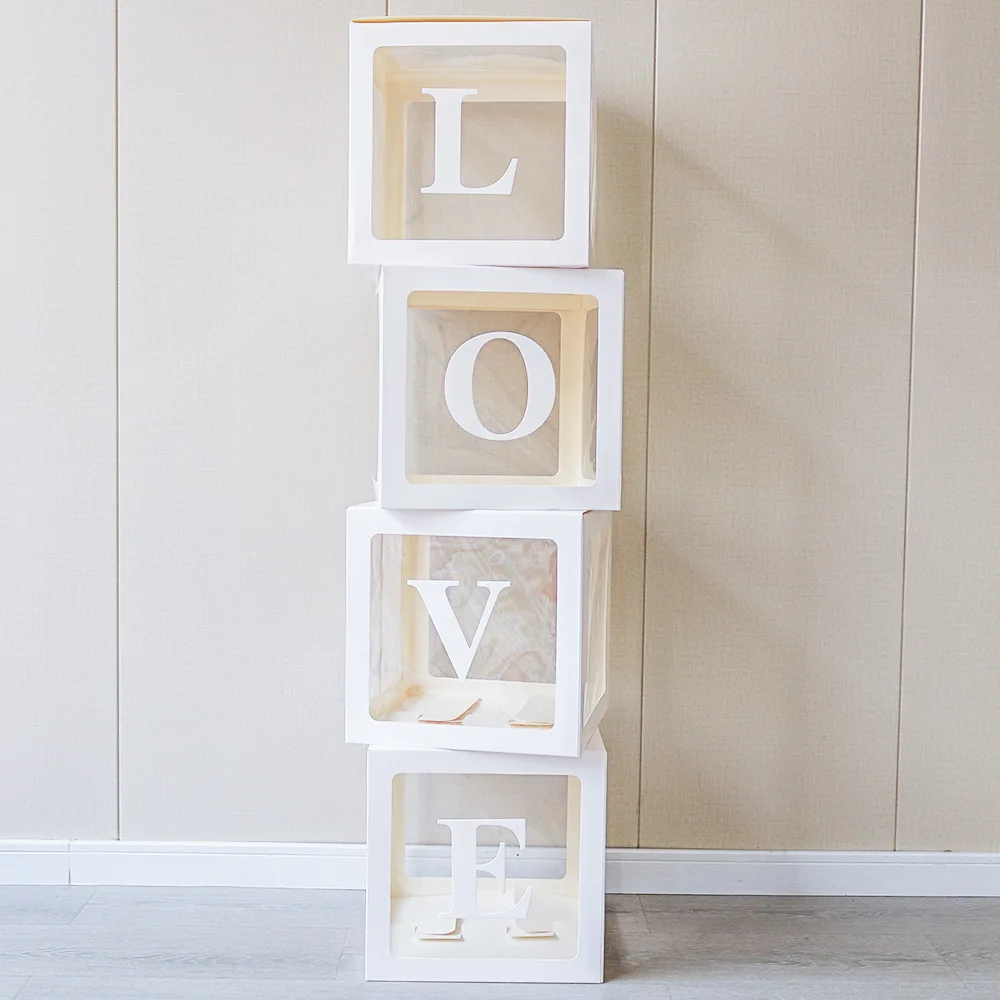 4 шт./компл. прозрачная упаковочная коробка с буквами алфавита, коробка для воздушных шаров на день рождения, декор для свадьбы, 1-й день рождения, детский латексный шар, Декор