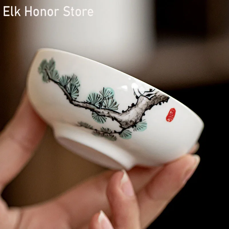 4 шт./компл. 80 мл чистый ручной росписи Matsukaze искусство чайная чаша белый фарфор чайная чашка Одиночная чашка домашняя большая чашка кунг-фу ч...