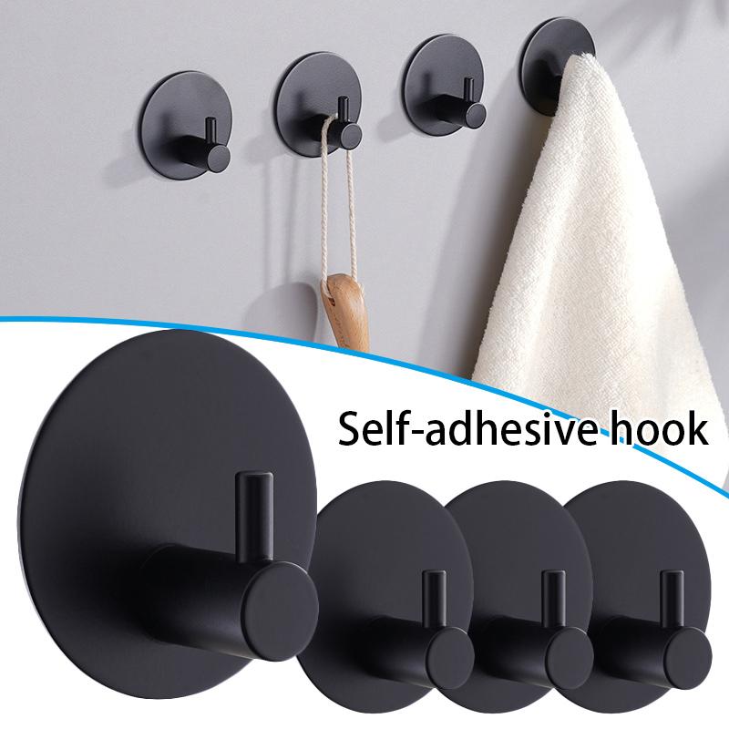 4 шт. крючок для полотенца из нержавеющей стали, вешалка для двери, самоклеящаяся настенная вешалка, вешалка для шляп, вешалка для ключей, настенный органайзер, домашний декор без перфорации Round bottom чёрный