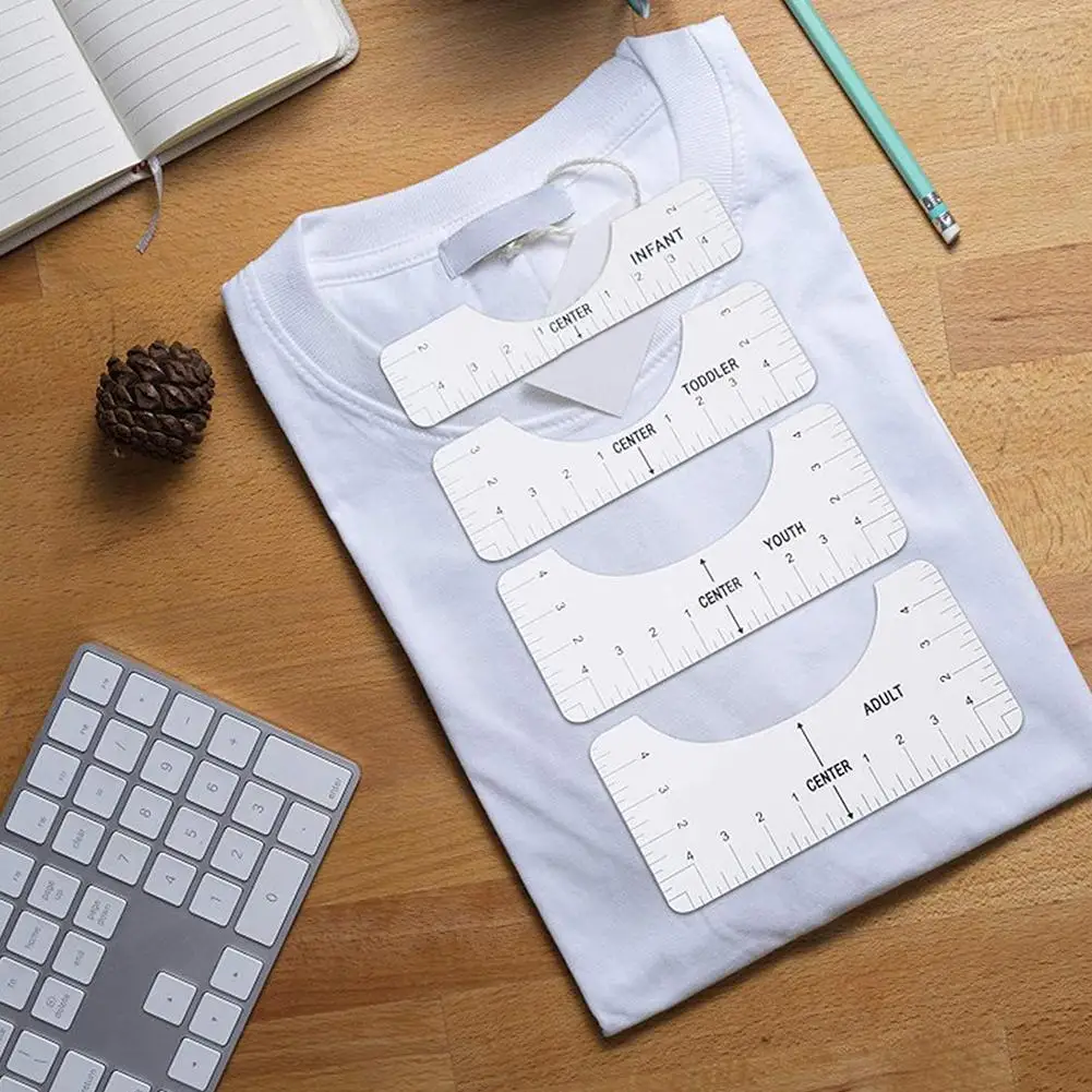 4 шт. линейка для футболок, инструмент для выравнивания футболки, дизайн центра, термопресс, виниловая линейка для измерения, DIY Инструменты ...