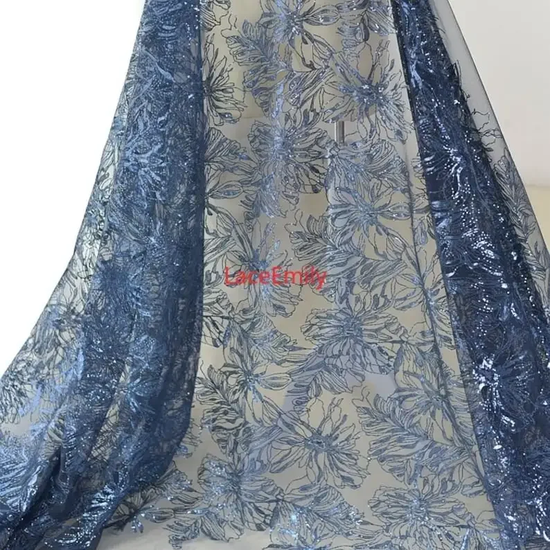 Кружевная ткань с золотым блеском и цветочной вышивкой, темно-синяя мягкая тюлевая ткань с блестками для платья для девочек, платье-пачка, свадебное платье