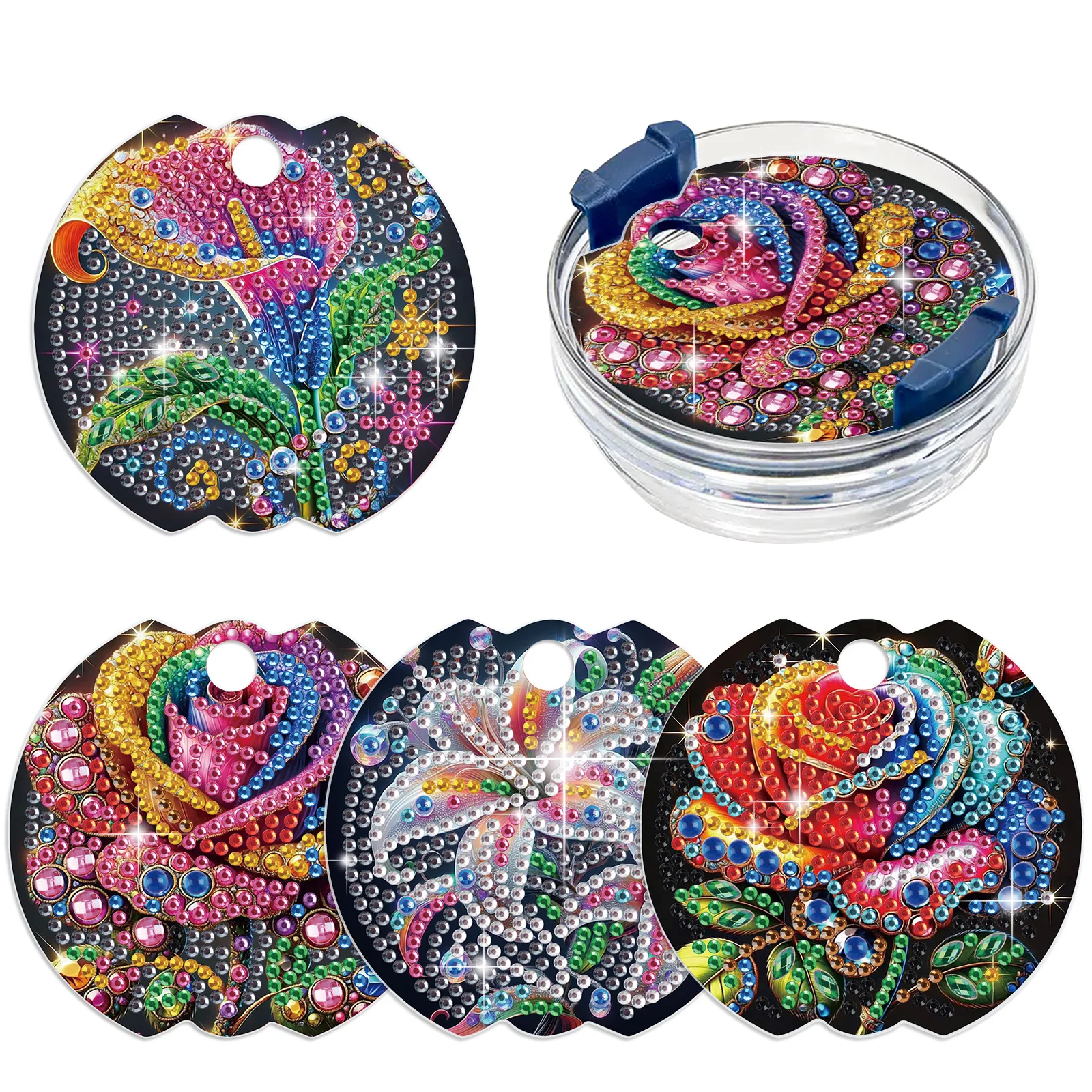 4 шт., наборы крышек для чашек с алмазной живописью, цветочная тема, алмазное искусство, специальная форма, алмазные изделия ручной работы, акриловые крышки для чашек, декор для чашек с водой