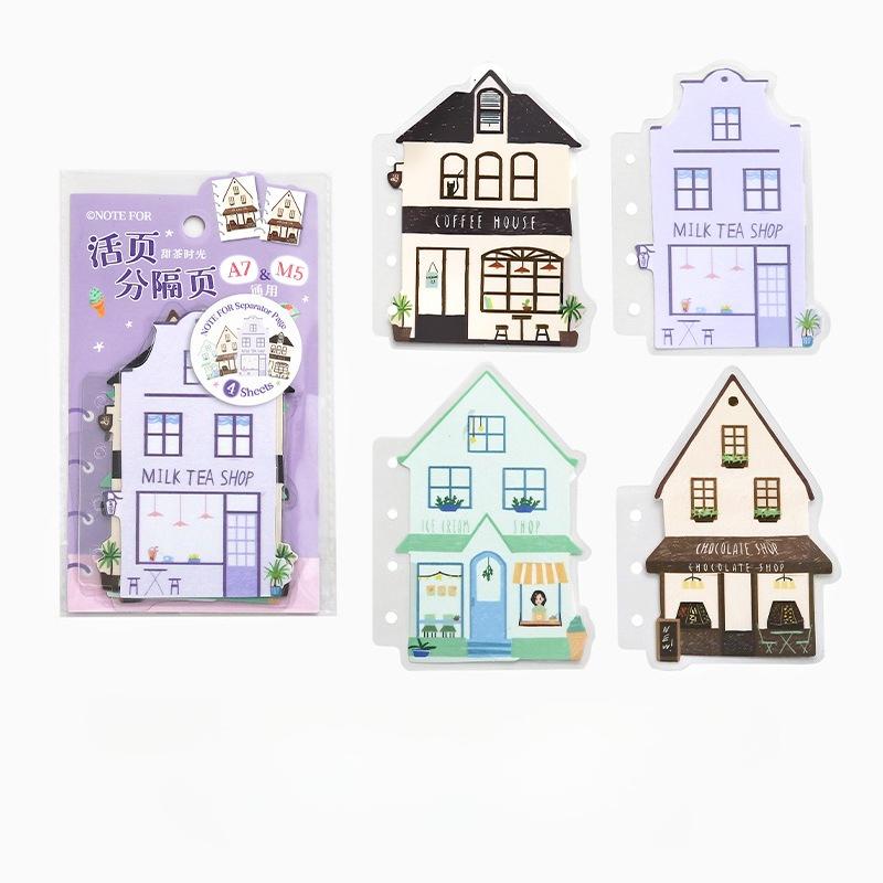 4 шт./набор Мини Размер M5 Разделитель Страниц для Скрапбукинга и Ведения Журнала Милая Мультяшная Аниме Серия Домиков Водонепроницаемая Страница-Маркер Детский Подарок