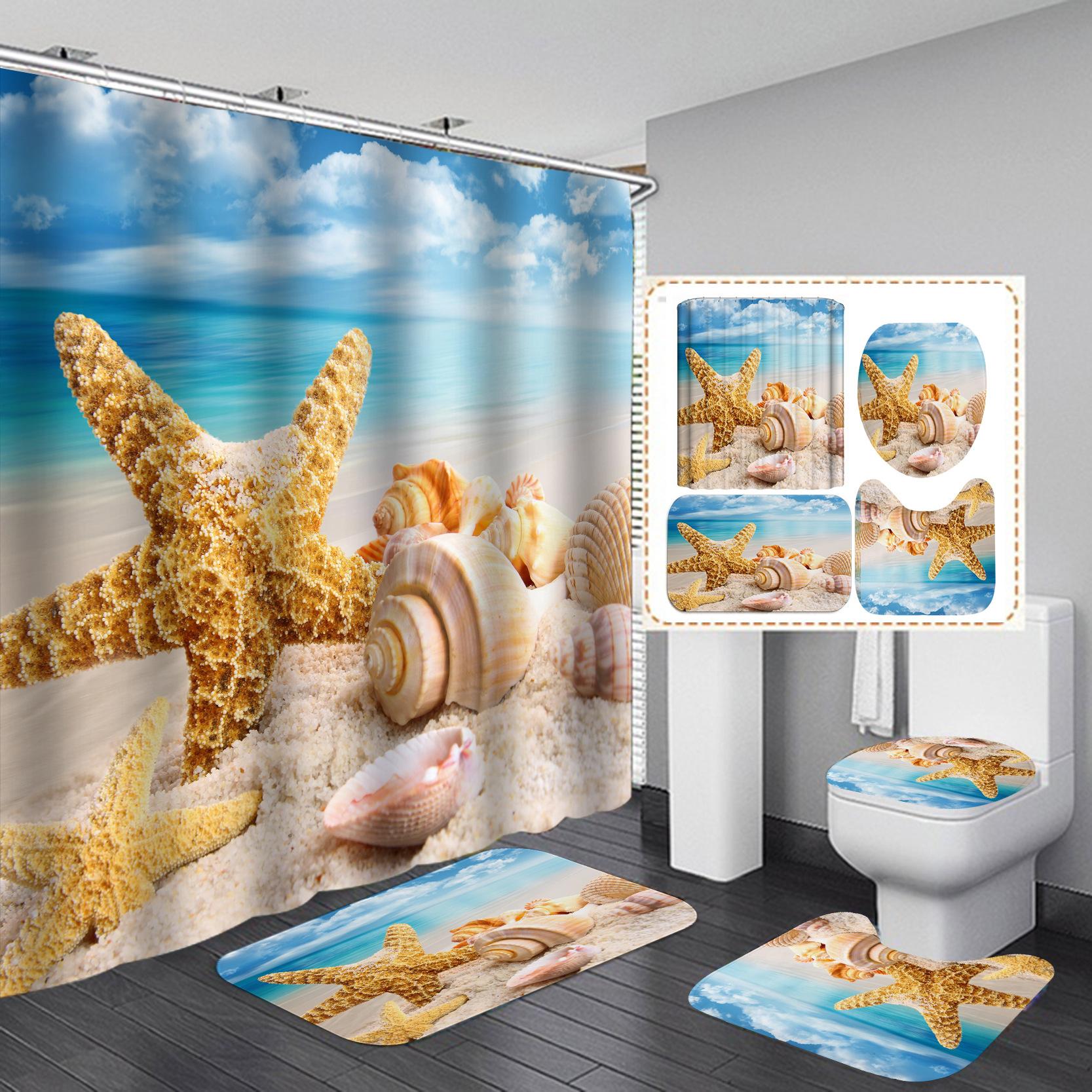 4 шт., пляжная морская звезда, наборы занавесок для душа для ванной комнаты, нескользящие коврики для ванной комнаты, крышка для унитаза, коврик для ванной