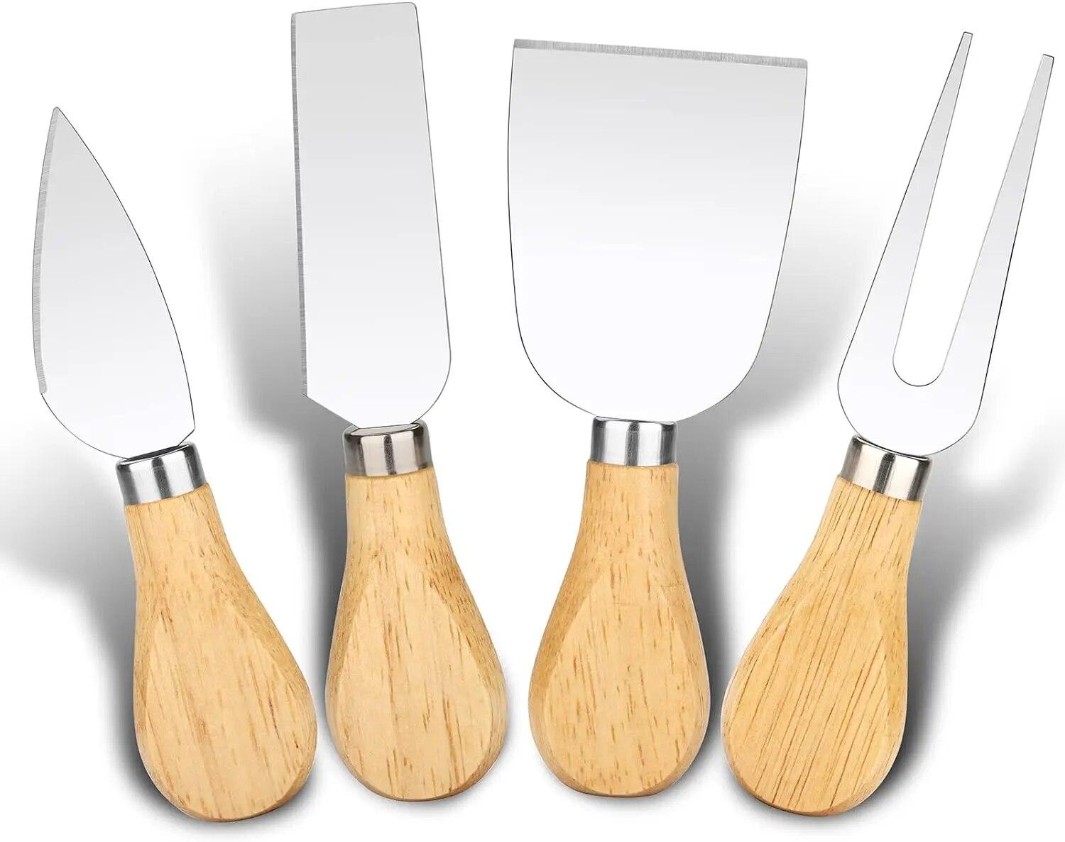 4 шт., резак для сыра, дубовый бамбуковый нож для сыра, деревянная ручка, нож для сыра, вилка, набор для сыра премиум-класса, кухонные аксессуары светло-серый