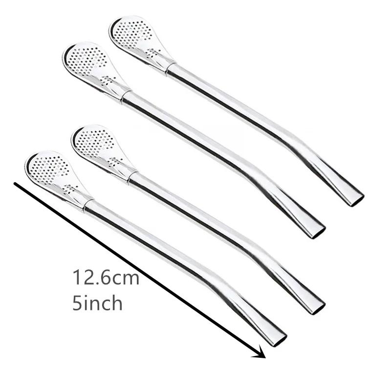4 шт. соломинки для питья из нержавеющей стали с фильтрующей ложкой, многоразовые металлические соломинки для чая Yerba Mate Bombilla