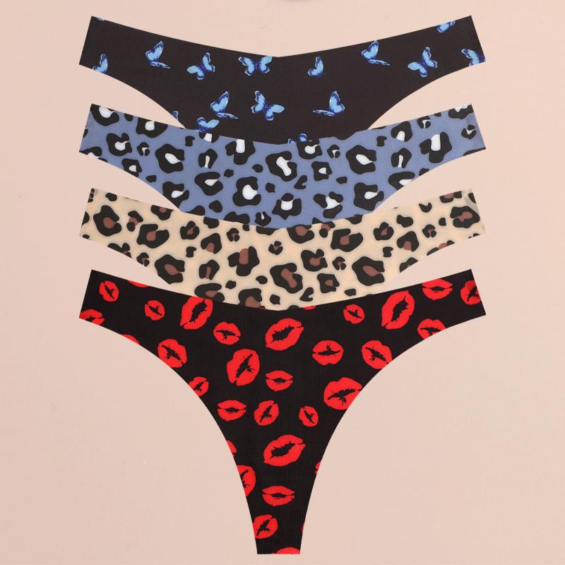 4 шт. ультратонкое бесшовное нижнее белье женские трусики сексуальные стринги с графическим принтом женские эластичные леопардовые стринги комфортное нижнее белье XL&4pcs