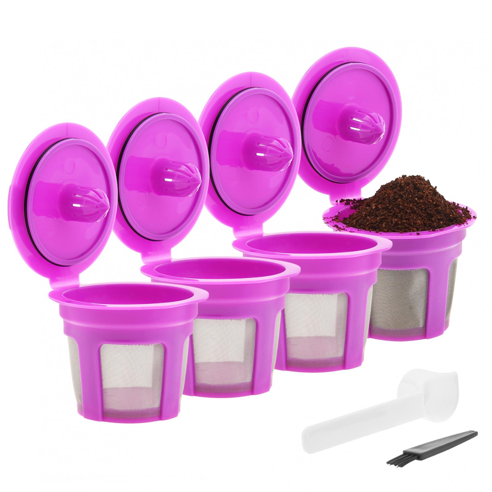 4 шт., черный/фиолетовый многоразовый фильтр для кофемашины, подходит для Keurig 1,0/2,0 с ложкой и кистью фиолетовый