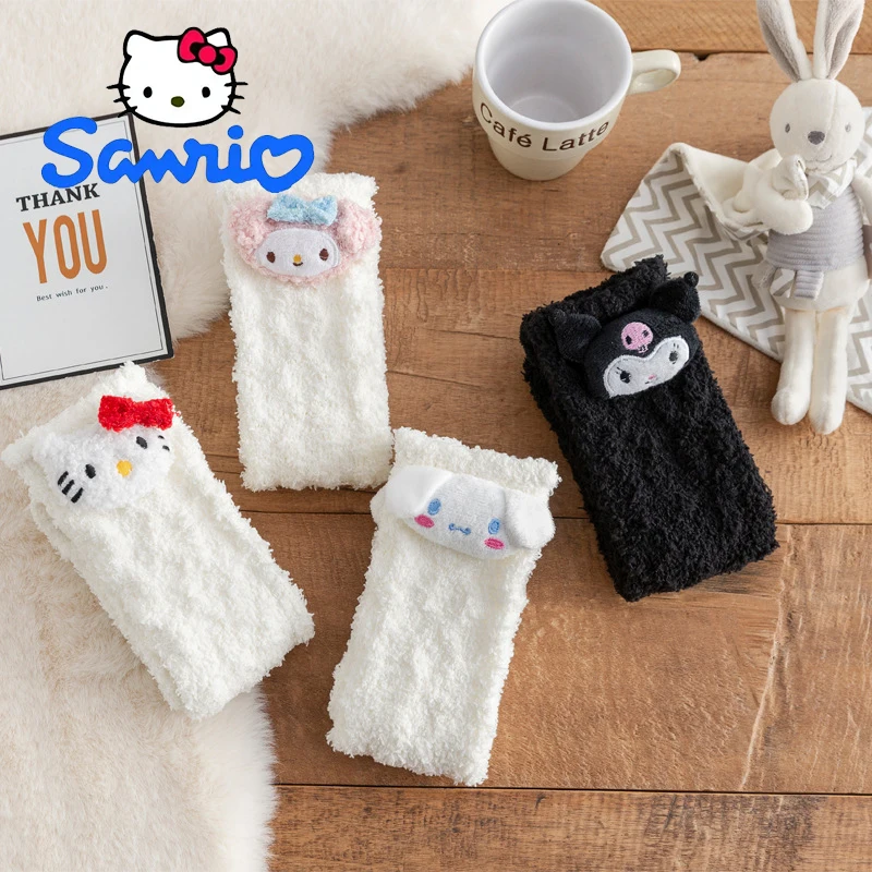 4 шт. Sanrio мультфильм Cinnamoroll Kuromi Mymelody Hello Kitty теплые средние Носки зимние детские носки коралловый бархат подарок для девочек