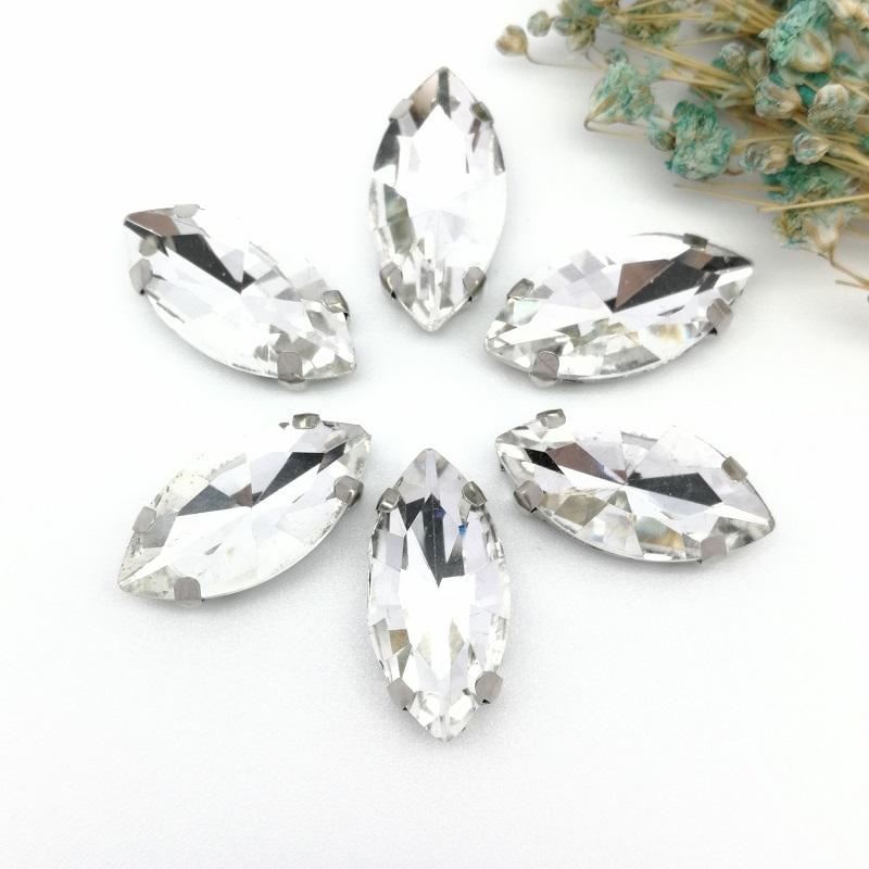 4-32 мм конский глаз / форма листа стеклянные стразы с коготь пришиты кристалл камень стразы алмаз металлическая основа пряжка для одежды 4X8 30ps белый