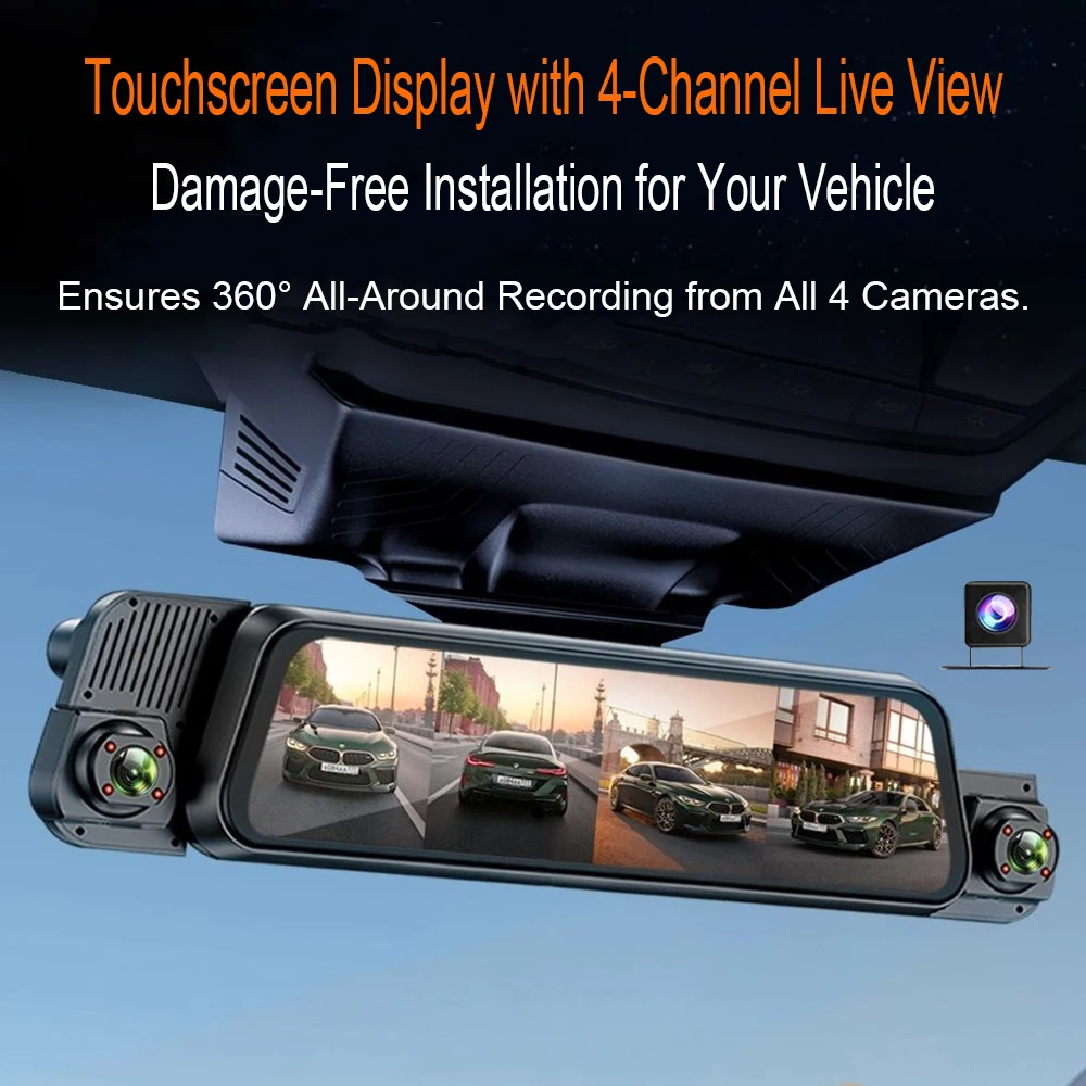 4 Channel Streaming Dash Cam 4 Camera with APP Control 24H Parking Mode Motion Detection G-Sensor Loop Recording Time Lapse WDR