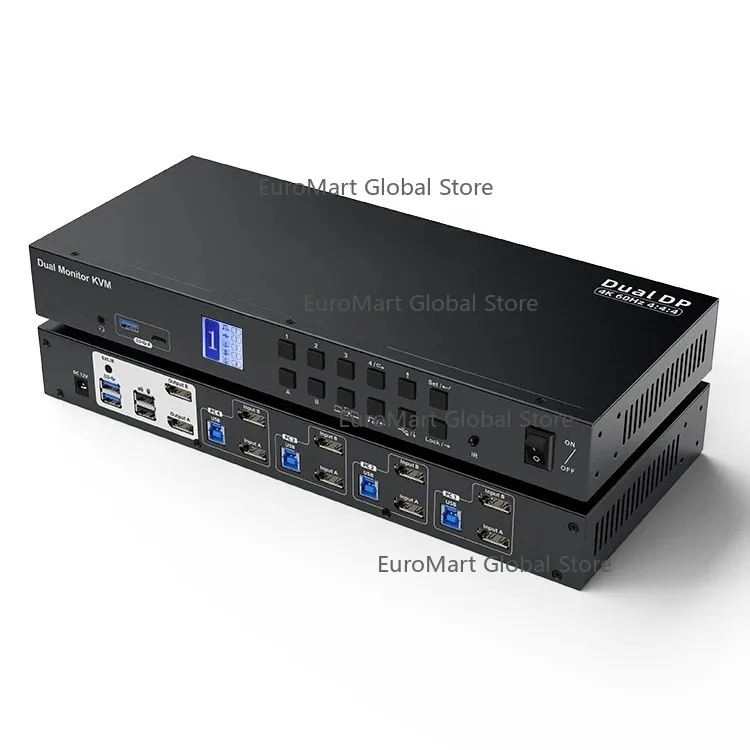 4 Port Dual Monitor KVM Switch Kit DP 4K60Hz with USB 3.0 Docking Station EDID Microphone L/R KVM Switches