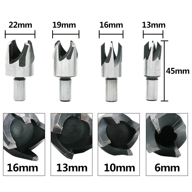 4 x резак для отверстий по дереву, резак для дюбелей, кухонные инструменты для столярных работ, модель для деревообработки