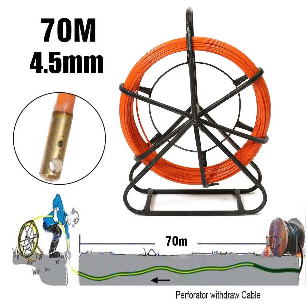 4.5mm 70M Fiberglass Wire Cable Running Rod Snakes Fish Rodder Puller Flexi Lead Electric Fiberglass Wire Cable Running Rod New