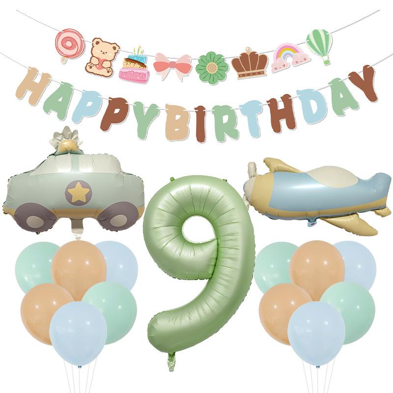40 дюймов Оливково-зеленый Цифровой Автомобиль Самолет Алюминиевая Фольга Воздушный Шар День Рождения Вечеринка Воздушный Шар Медведь Флаг Набор Украшение Olive Green Number 9 Set