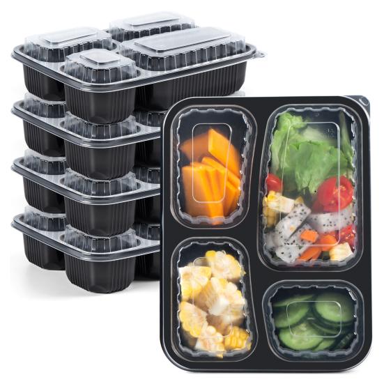 40 комплектов контейнеров для приготовления еды, 4 отделения, без бисфенола А, микроволновая печь, морозильник, безопасное удобное решение для хранения продуктов чёрный