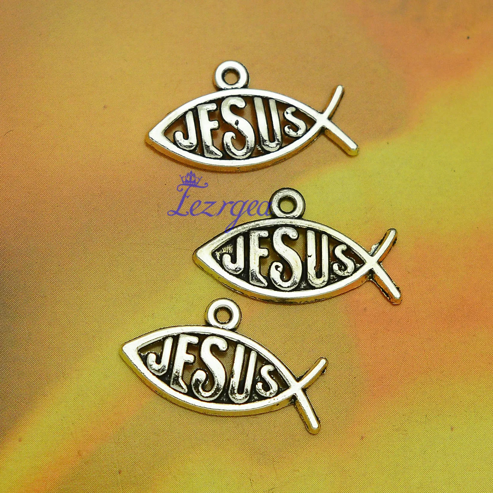 40 шт./лот-22x12 мм Античное посеребренное ожерелье с Иисусом рыбой Подвески DIY ожерелье брелок поставки ювелирных изделий Аксессуары