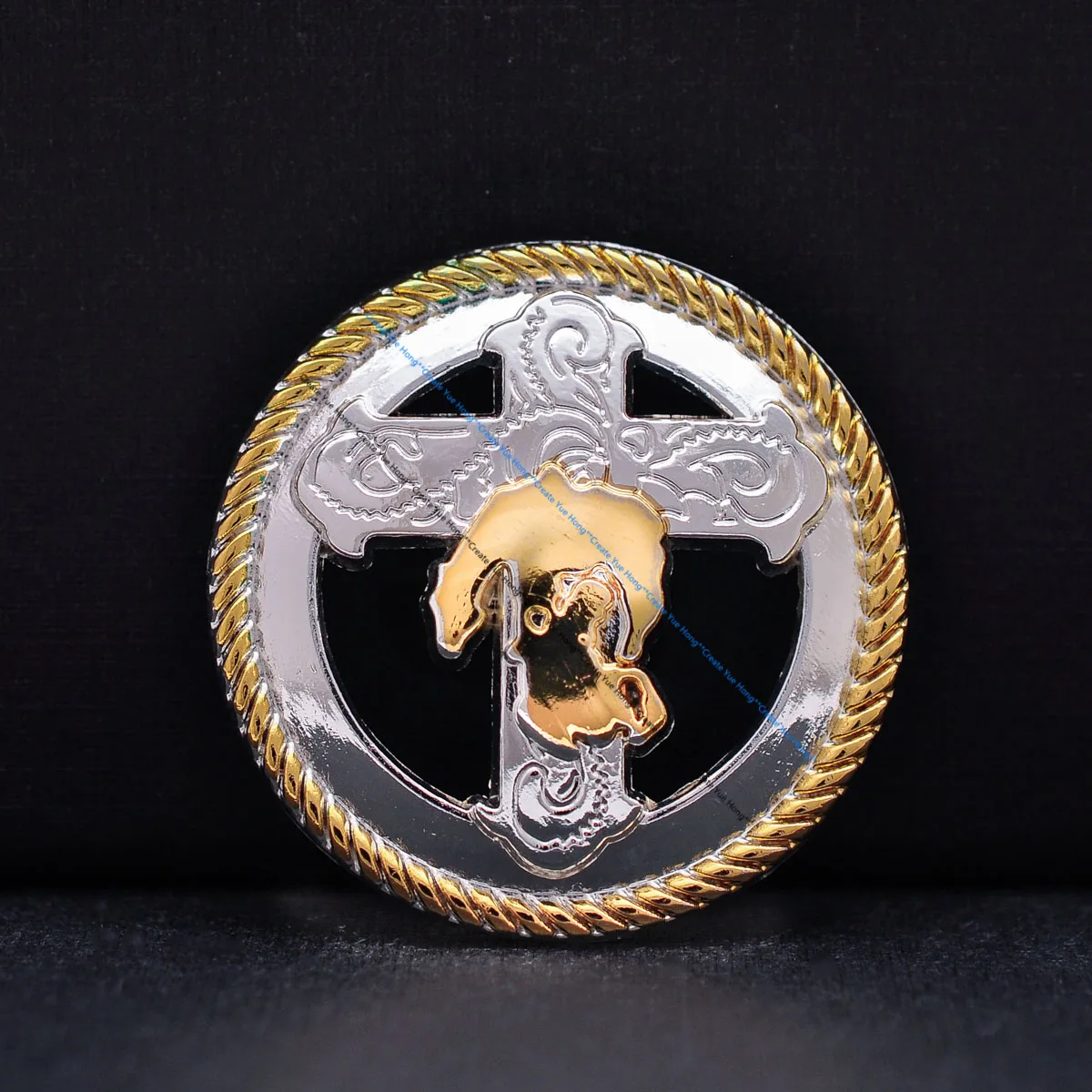 Лот, 6 шт., 34 мм, серебристая, золотая веревка, боковая вестерн-крест, лошадь, родео, седло, уздечка, головка, Concho для декора ремня из кожи