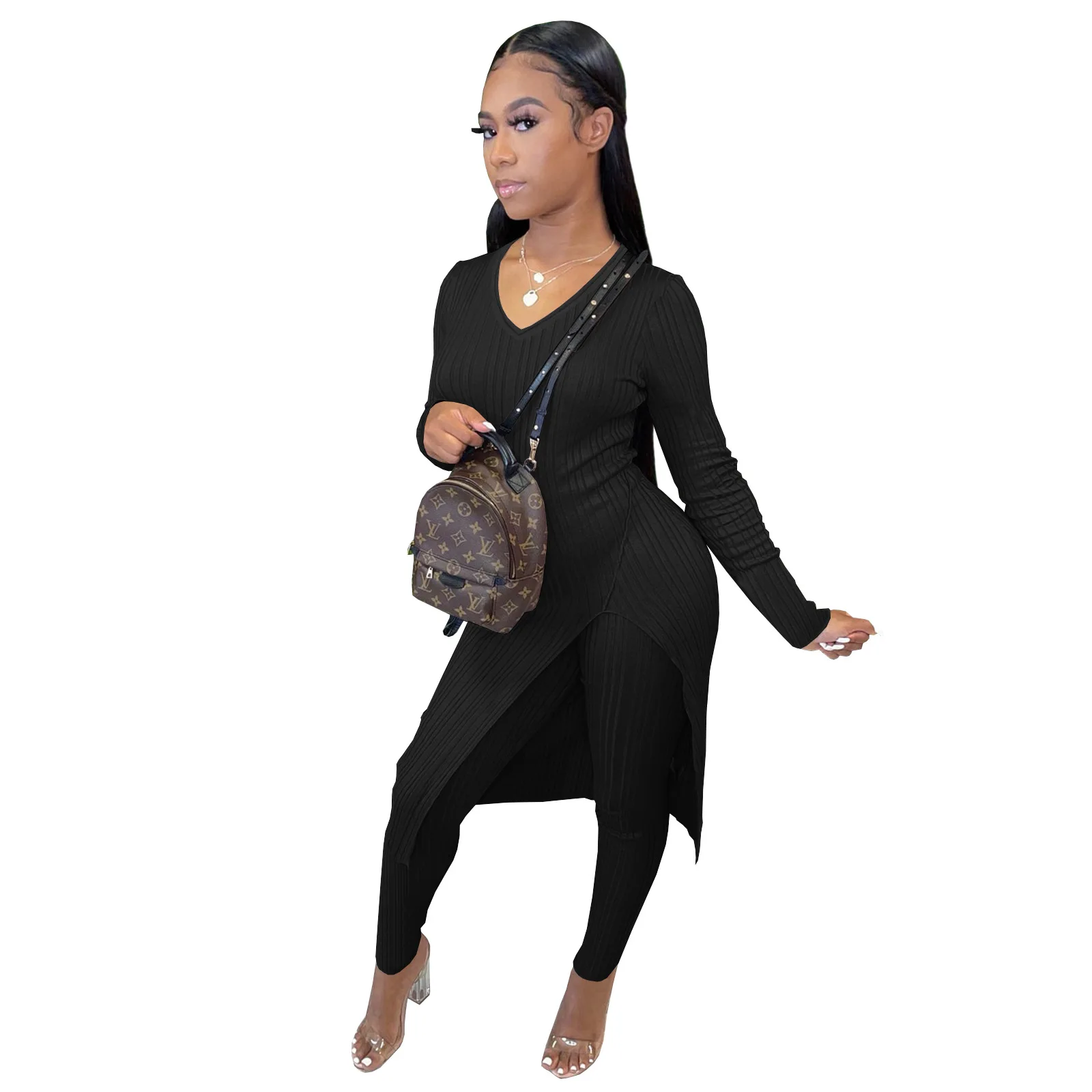Ladies New Product 2021 Pure Color Slim Fashion Temperament Irregular V-neck Long Sleeve Shirt Suitable for Office Party Set
