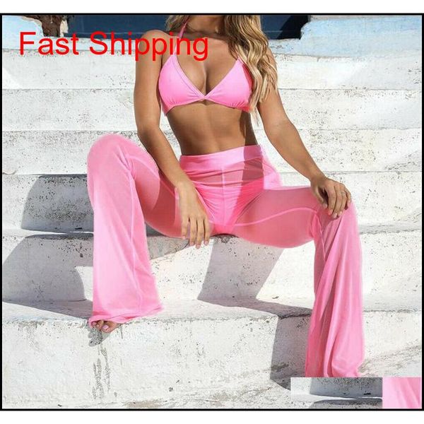 women pants beach cover up high waist beach wear women flared pants solid mesh sheer ladies trousers maio feminino praia kxnfl