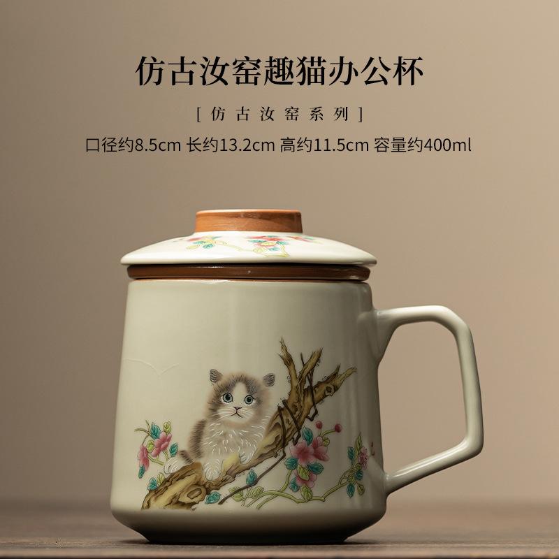 400 мл антикварный фарфоровый фильтр для обжига в печи Ru, чашка-сепаратор для чая, симпатичная офисная кружка с изображением кота из дерева, личная кружка для воды с крышкой, чашки с ручкой