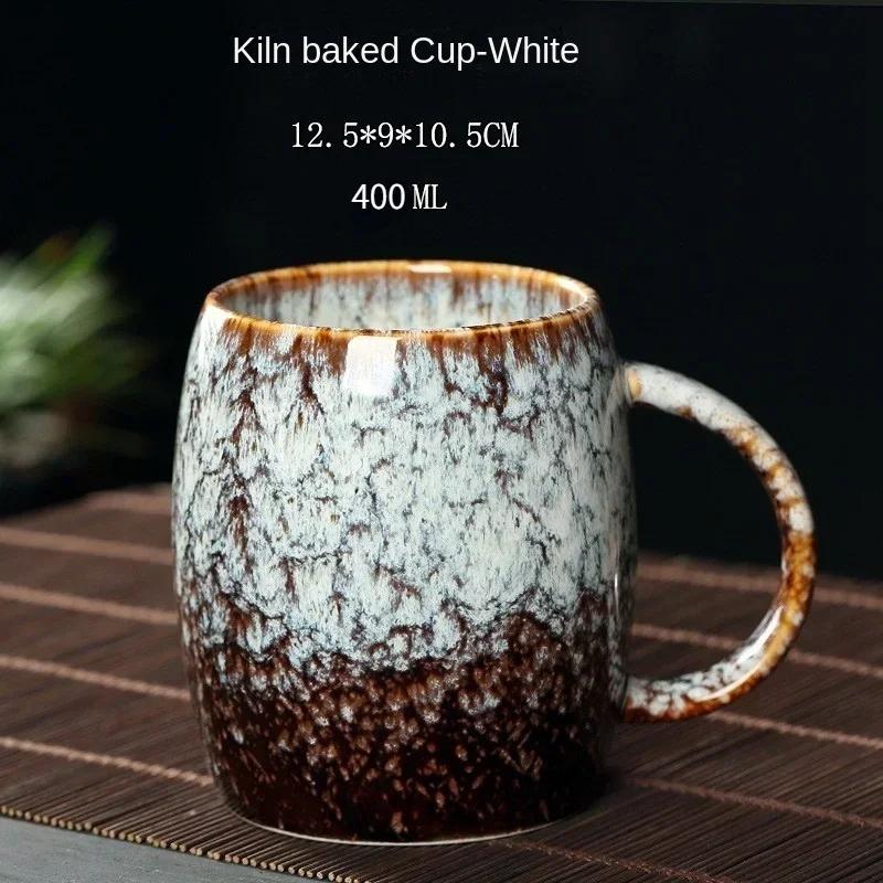 400 мл Большая китайская керамическая кружка с изменением цвета в печи, кофейная чашка, фарфоровые стаканы для воды, керамические чайные кружки, подарочная посуда для напитков с ручкой