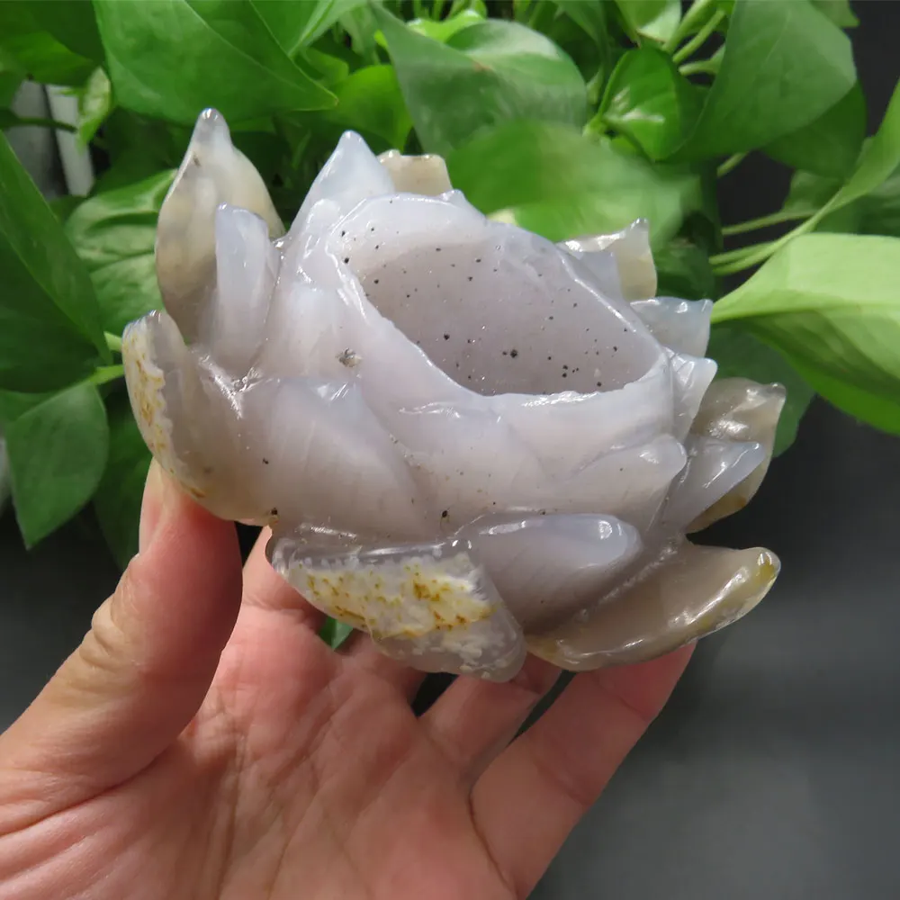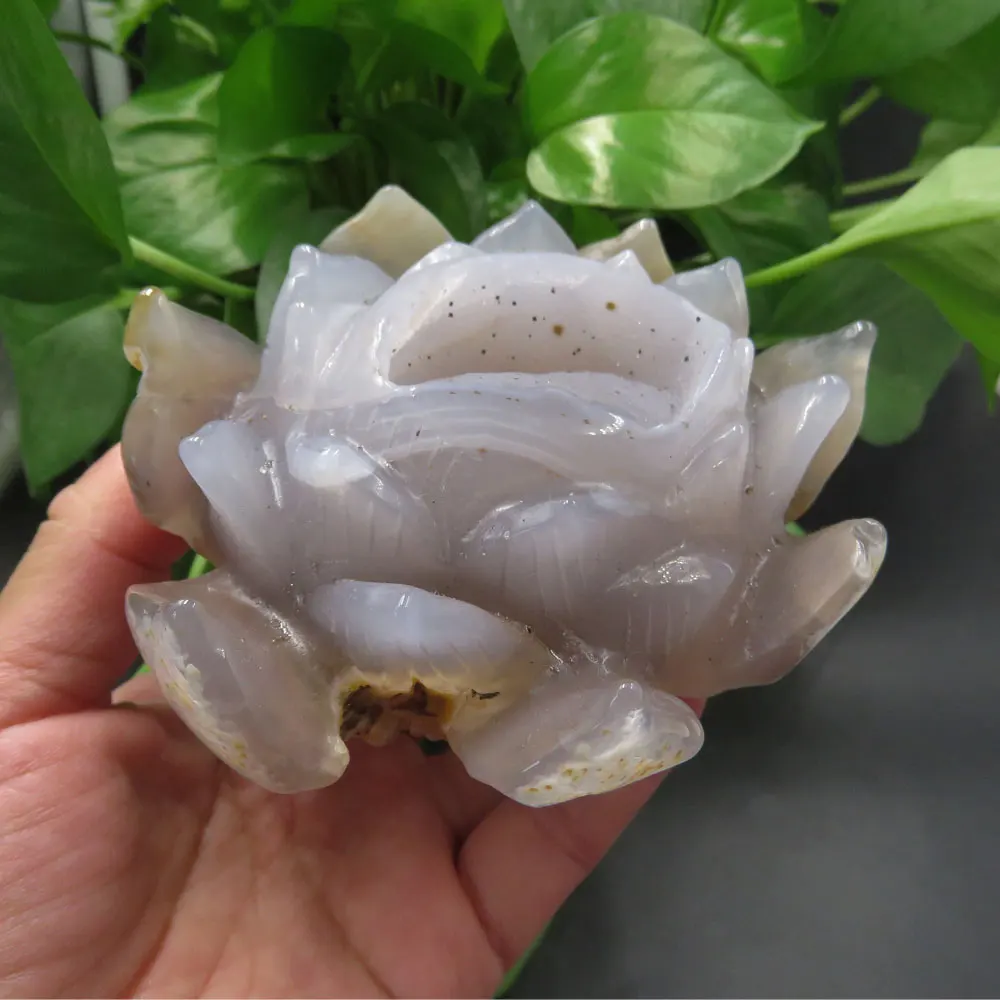 404 г AAAA натуральный белый Агат Лотос Резьба Крафт прекрасная скульптура домашний Декор 2020 подарок