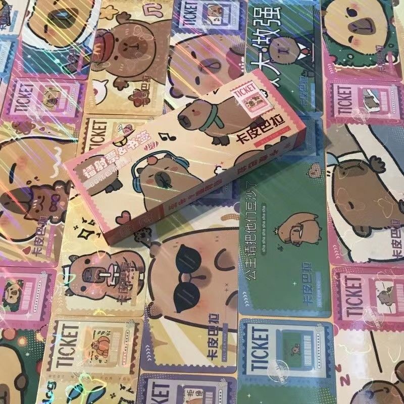 40Pcs/Pack Capybara Laser Ticket Rectangular Bookmark 40pcs LOMO Postcard Cartoon Collection Card