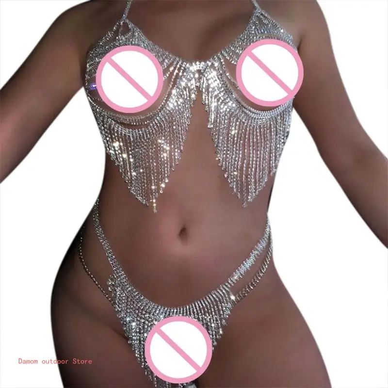 425E женское сексуальное блестящее нижнее белье для женского бикини с блестящими искусственными кристаллами