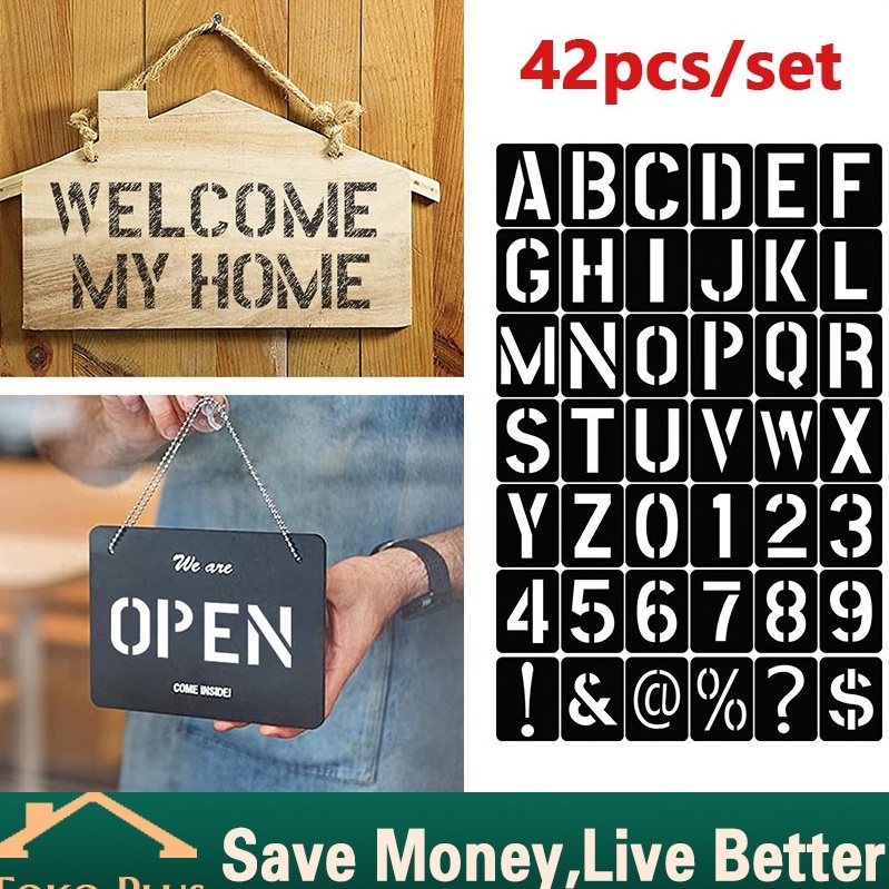 42PCSSet Cetakan Stencil Huruf Angka Cat Semprot Lettering Stencil Set