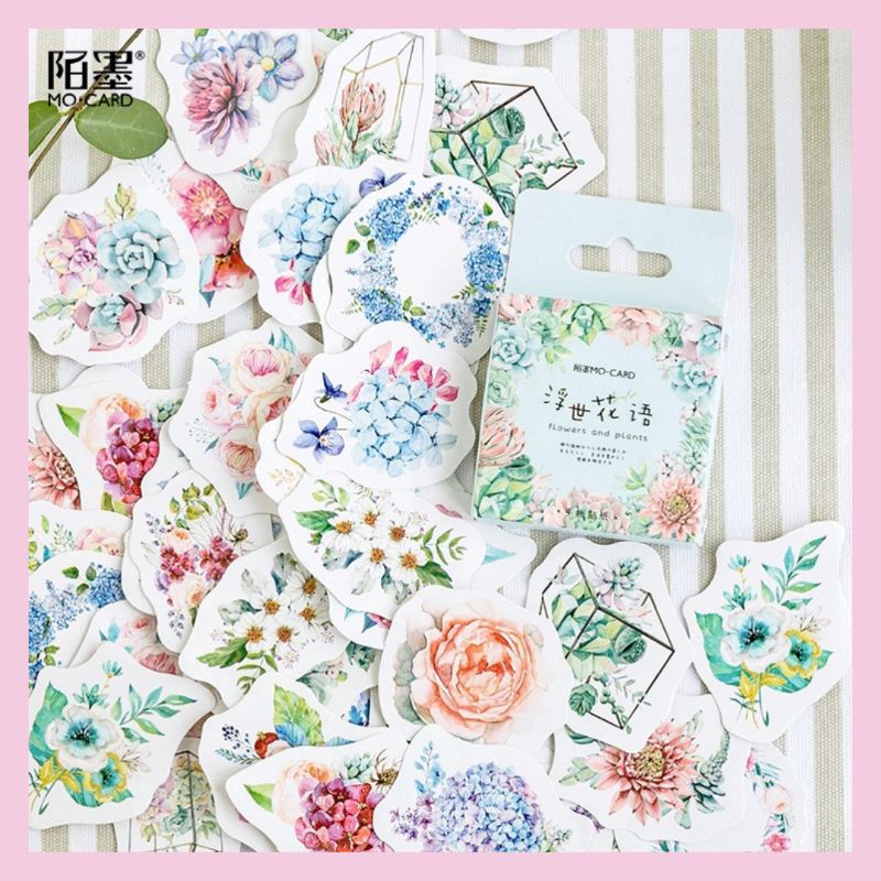 satu box berisi 45 lembar stiker Flower Ornament untuk scrapbook, journal, tracker, dan diary
