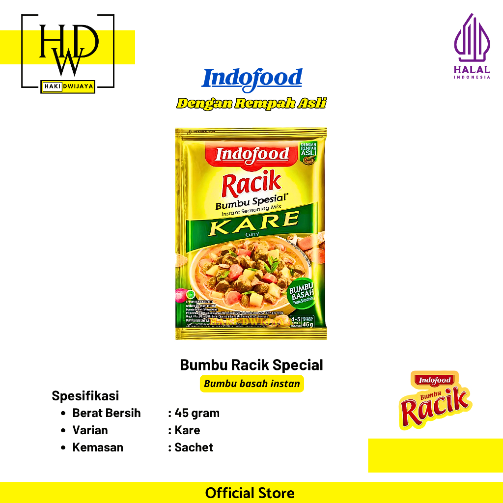 Rasakan kenikmatan masakan kare tradisional Indonesia dengan cara yang praktis namun tetap autentik menggunakan Indofood Racik Bumbu Spesial Kare. Diracik dari rempah-rempah pilihan seperti ketumbar, kunyit, jintan, kayu manis, lengkuas, dan cengkeh, bumbu ini menghadirkan rasa kare yang hangat, aromatik, dan kaya rasa—cocok untuk berbagai bahan seperti ayam, daging sapi, atau sayuran.