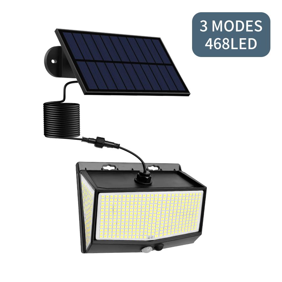 468LED Split Solar Lamp 3 режима освещения Уличное украшение Солнечный свет Настенный светильник PIR Датчик движения Водонепроницаемый Двор Садовое освещение