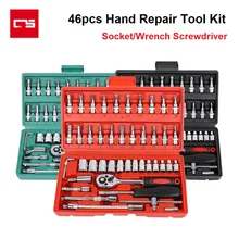 46PCS Hand Tools Kit Socket Set Quick Ratchet Wrench Combination Slotted Cross Trox Hex Screwdriver Bit Toolbox for Car Bicycle