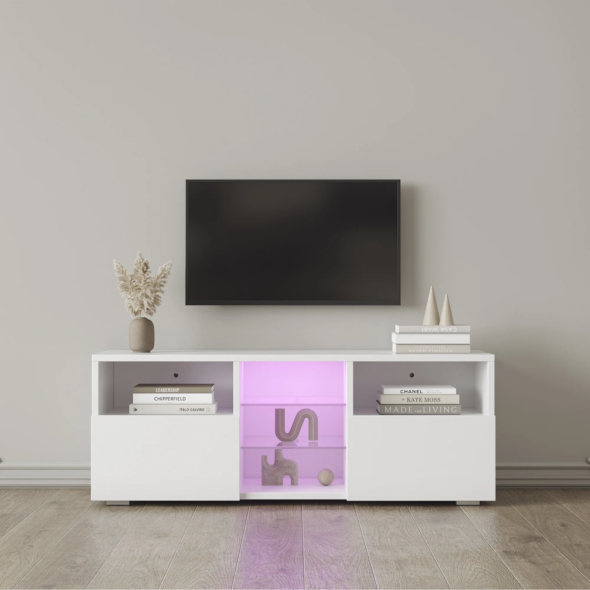 47,2x13,8x17,7 В FuritureModern минималистский ТВ-шкаф для гостиной с 20 цветными светодиодный ными лампами, подставка для телевизора, развлекательный центр, белый