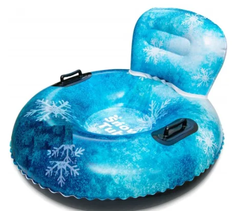 47\" Large Snow Tube with Backrest PVC Plastic Foldable and Inflatable Snow Sled Safety Feature for Winter Fun