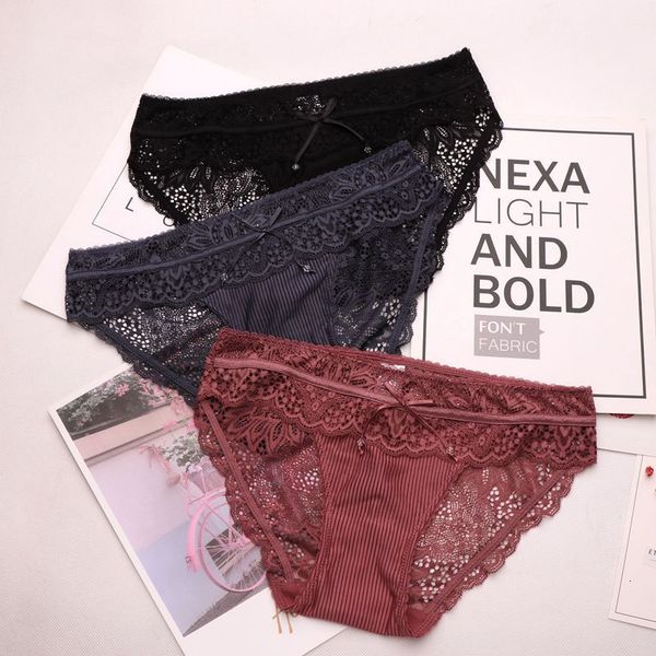 lace underpants women's diamond fashion hollow bow low waist girl's briefs