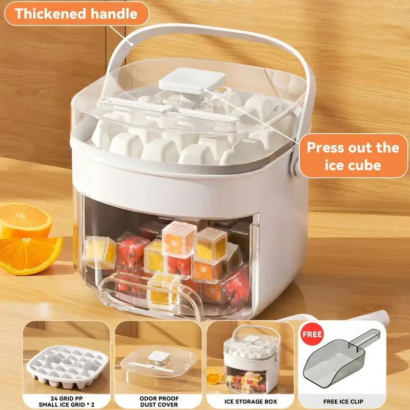 48 Очень большой ледогенератор - двухслойный, лоток для хранения из пищевого пластика - портативная конструкция, необходимый кухонный гаджет.
