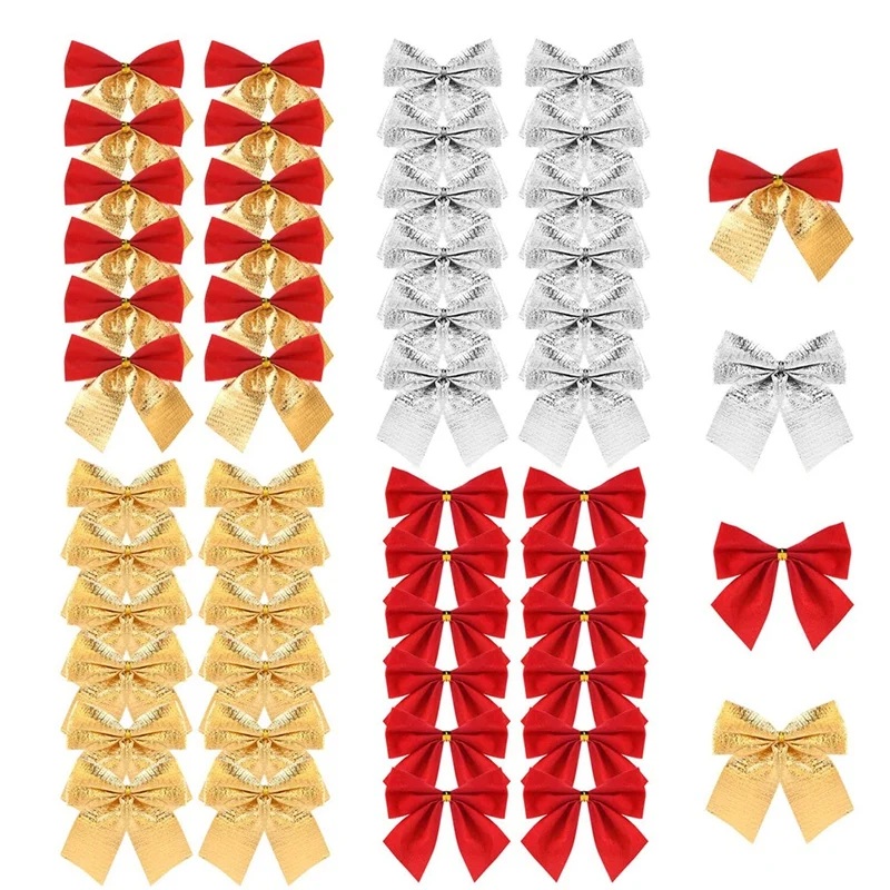 48 штук, Рождественская лента с бантом, искусственное украшение с бантом, подарки для упаковки, товары ручной работы (4 цвета)