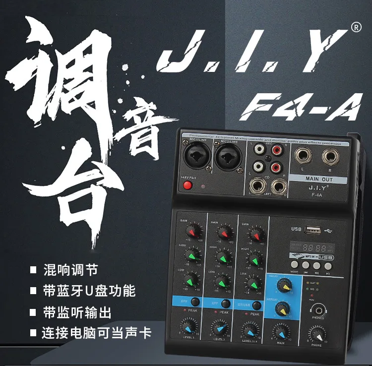 4CH микшер, домашний компьютер, микшер для сцены, маленький USB, звук, Bluetooth
