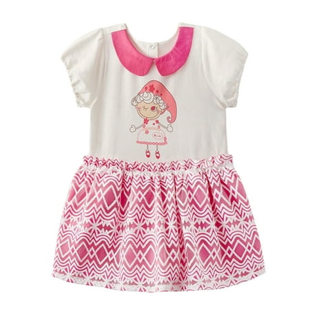 Gyratedream Summer Baby Girls Cotton Cute Girls Printed Princess Dress Short Sleeve Lace Floral Sundress Birthday Clothes 9M-5T